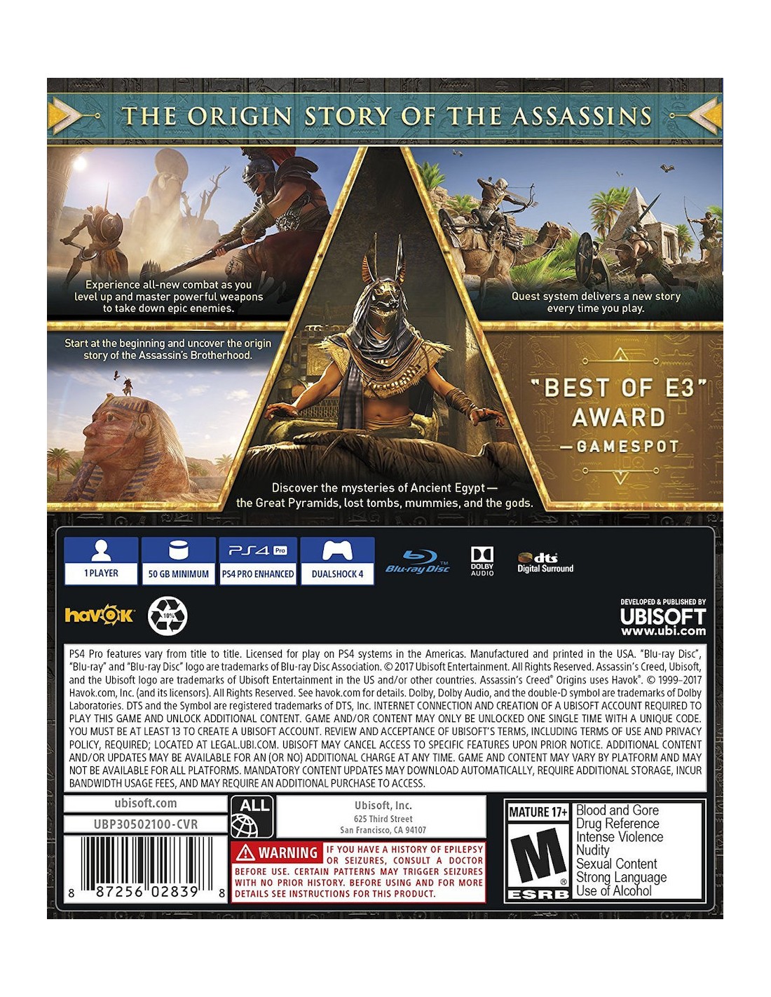 Το Origins μας μεταφέρει στην Αρχαία Αίγυπτο και ως παίκτες αναλαμβάνουμε τον έλεγχο του Bayek. Βρισκόμαστε στο τέλος της δυναστείας των Πτολεμαίων περίπου στο 30π.Χ.